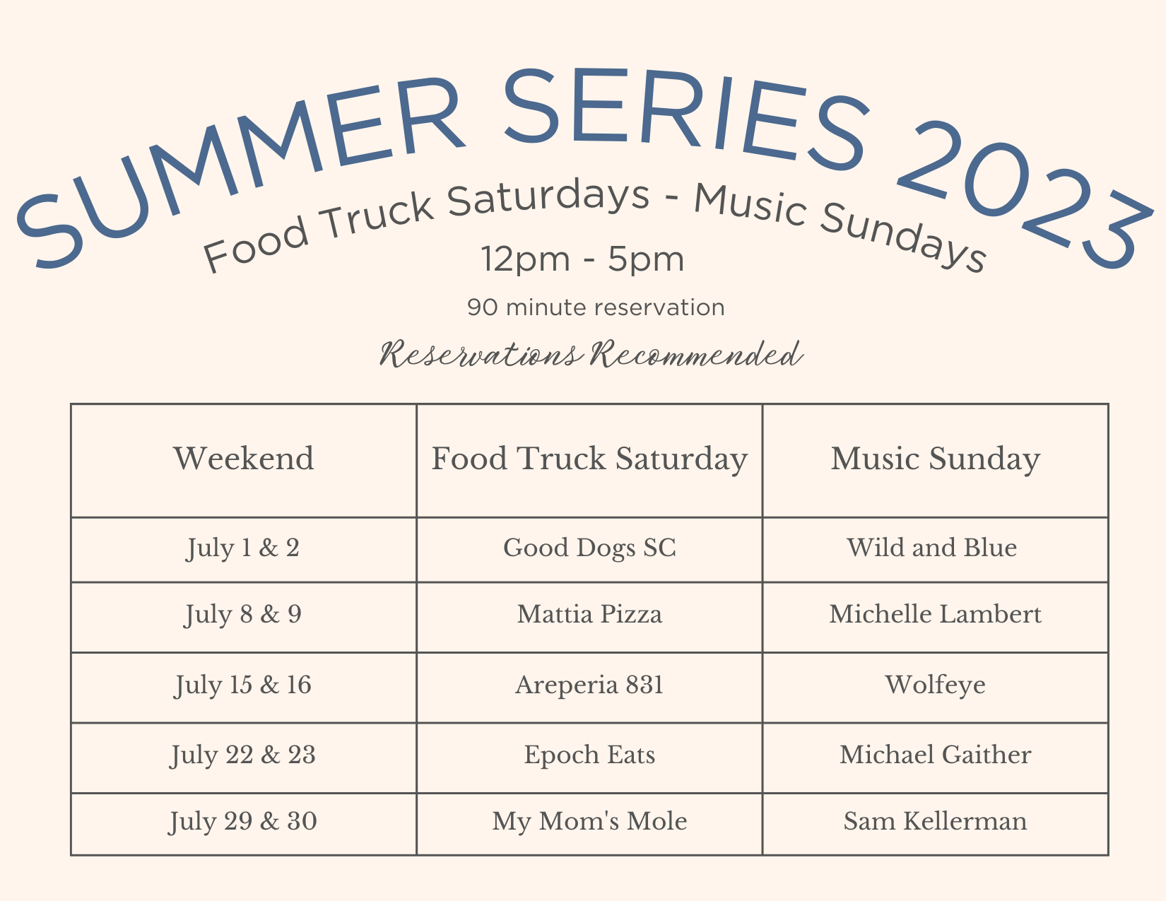 Summer SUNDAYS with live music. Join us for Sunday, fun-day! 12 - 5 pm.